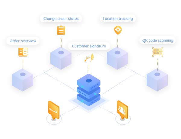 We can add all kinds of functions: order overview, changes in order status, location tracking, barcode/QR code scanning, customer signature, POD generation, audio alert/guide, etc.